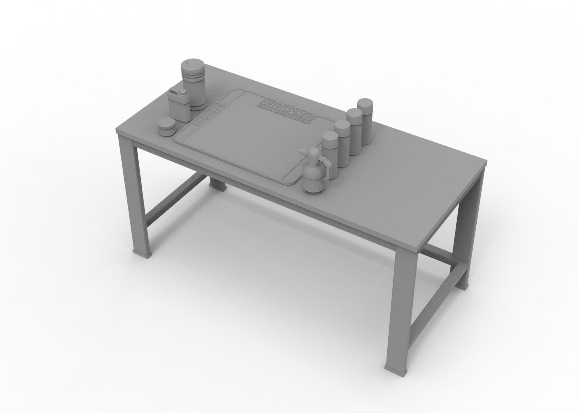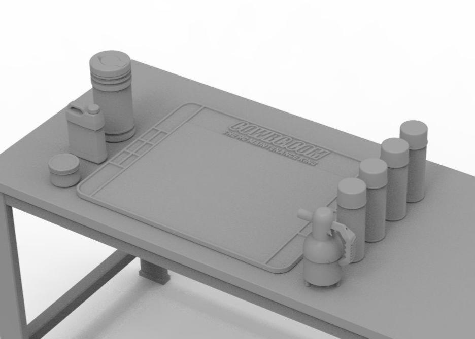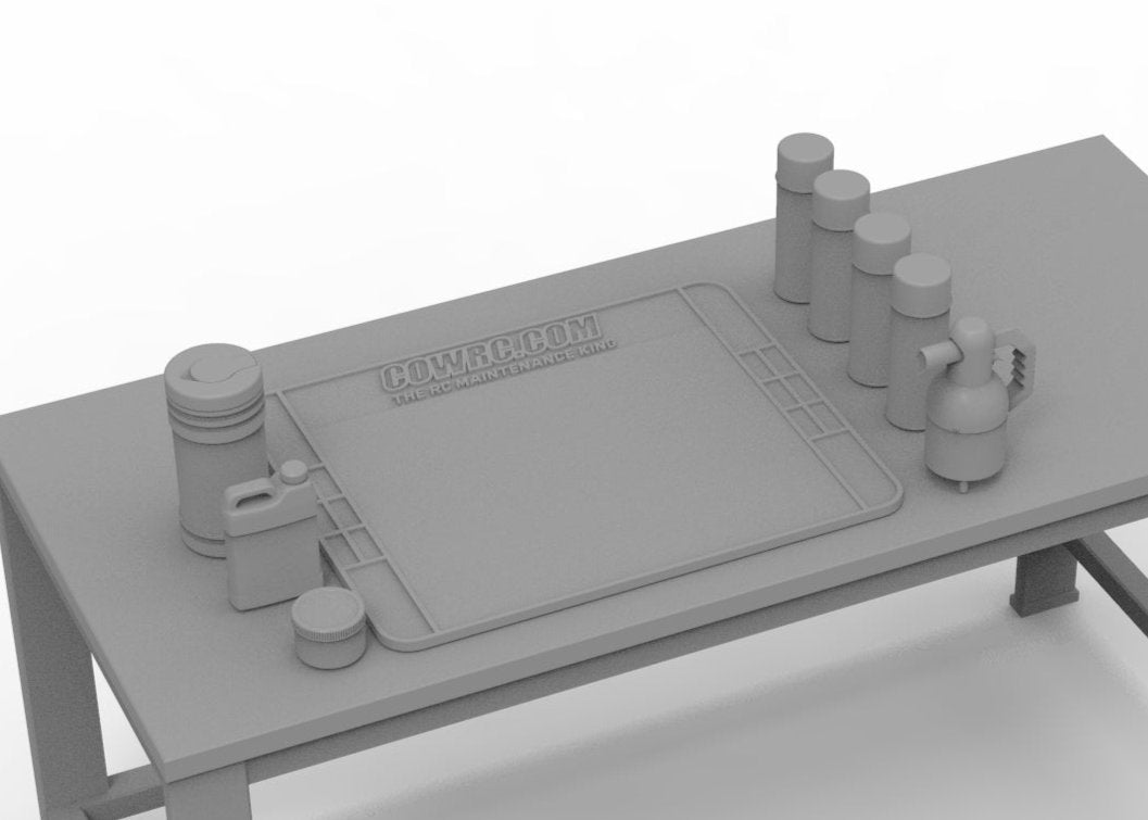 The download includes 1/10 scale label art that you can print and apply to the CowRC items. The set also includes a scale workbench. The workbench design comes in multiple parts allowing you to print in different colors and materials as needed.