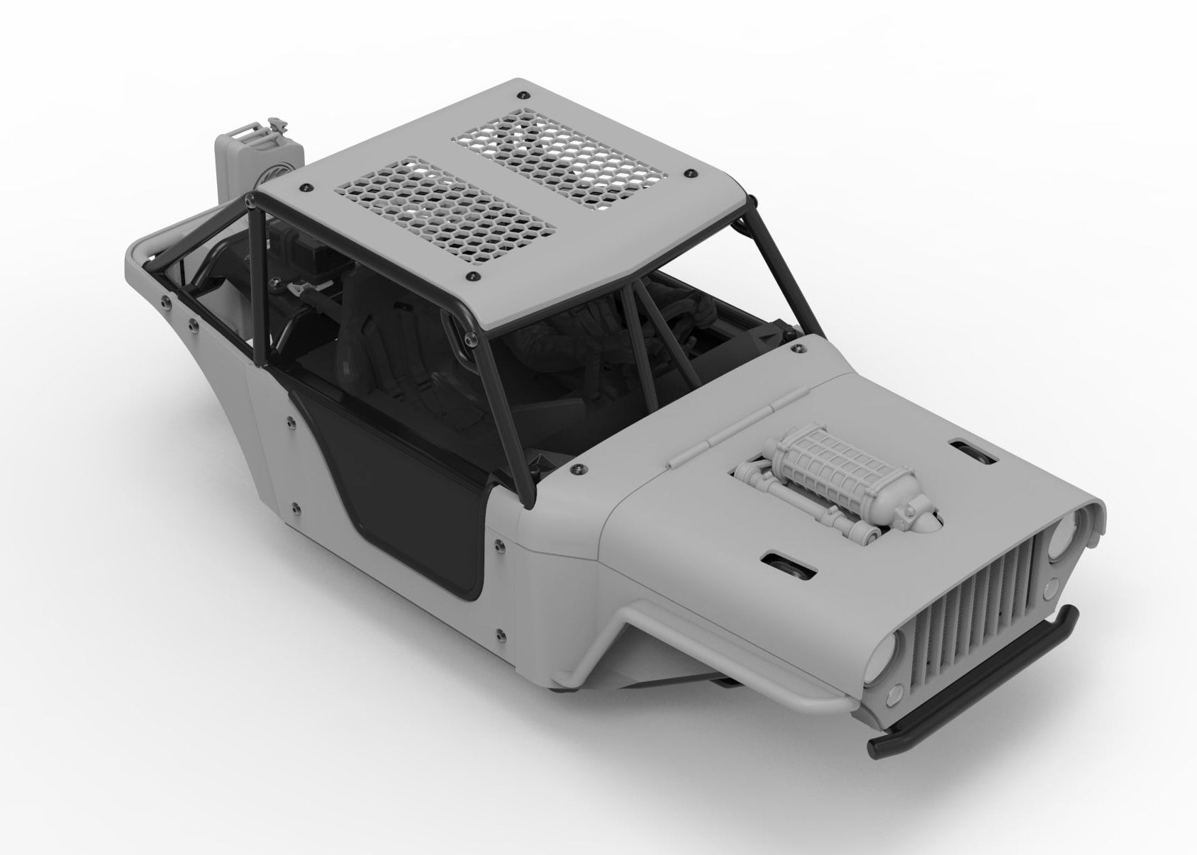 The Terra Recon Scout Roof adds a clean, functional layer to your build while staying true to the rugged Recon aesthetic. Featuring a hex-pattern mesh design, it mirrors the signature detailing found across the Terra Bug conversion — tying your entire setup together with a cohesive, scale-driven look.